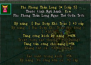 Phi Phong Thần Long 2*-3* : 1000xu + 100 mảnh phi phong + 200 túi TK
